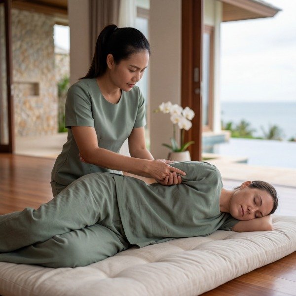 Thai traditional techniques combined with aromatherapy, hot stone, and deep tissue methods. Sessions from 60 to 120 minutes delivered to your hotel, villa, or residence.